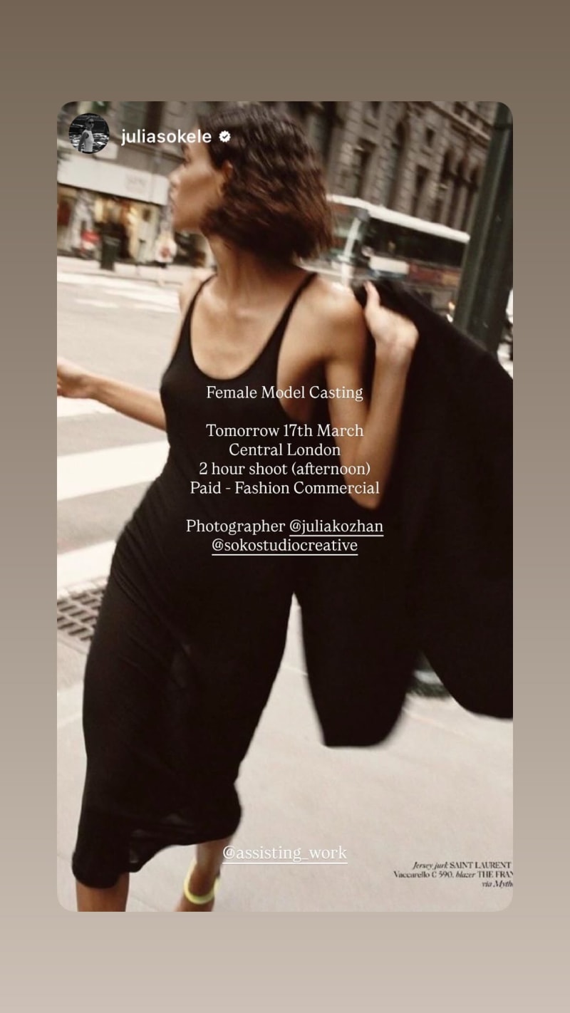 female model casting for a paid fashion commercial. 2 hour afternoon shoot in central london.