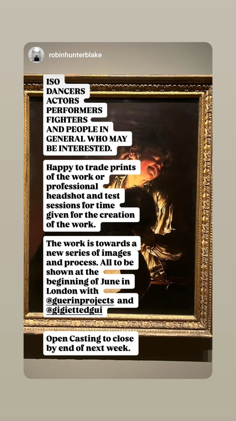 open casting for a new series of images and process, seeking dancers, actors, performers, fighters and other interested people. offering trade prints, professional headshots and test sessions in exchange for time given.