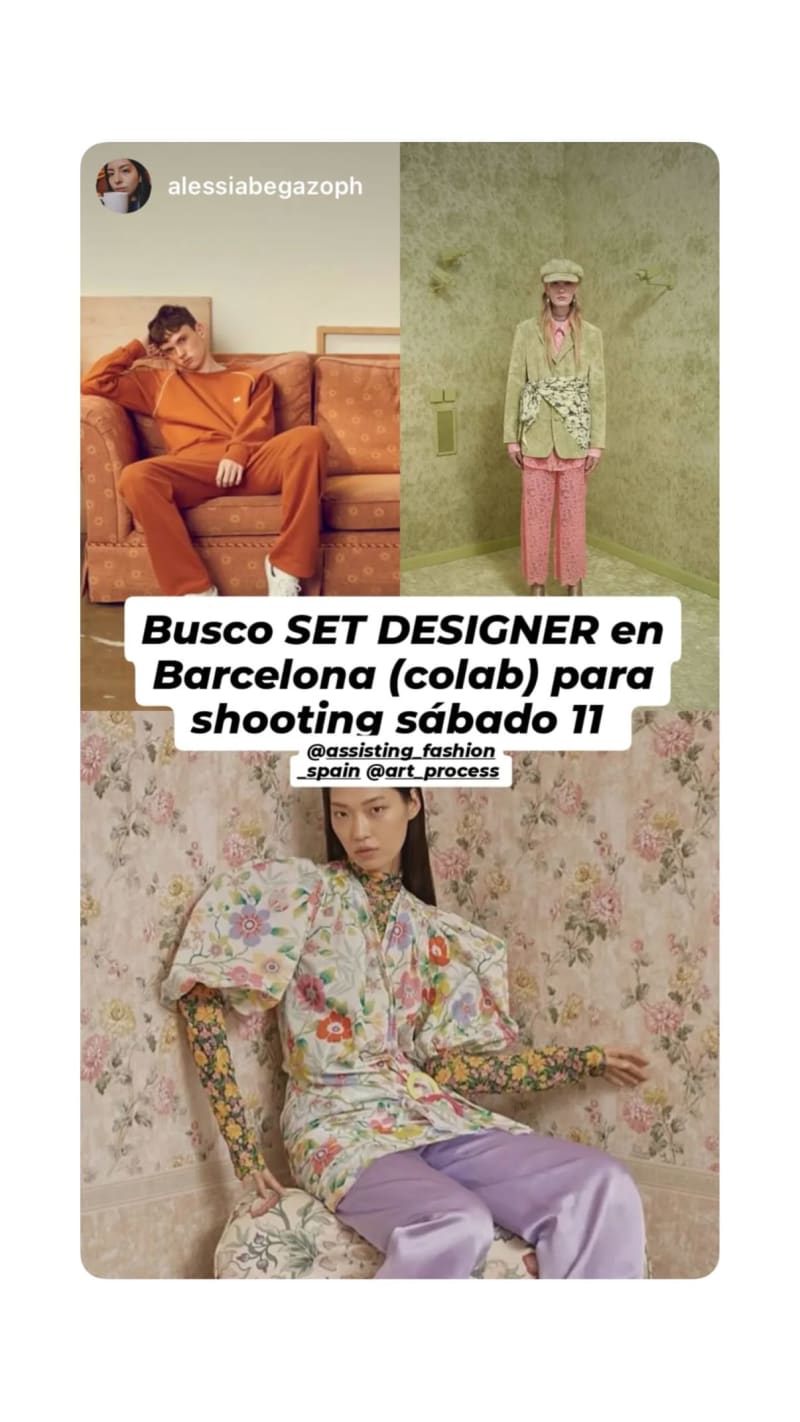 seeking a set designer for a collaborative shoot in barcelona on saturday the 11th.