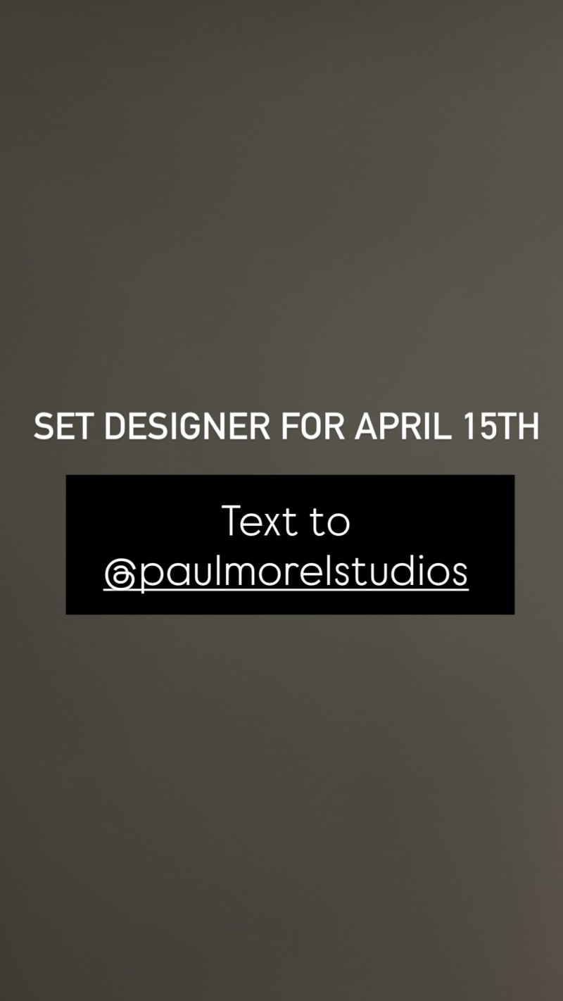 seeking a set designer for april 15th. applicants should text @paulmorelstudios.
