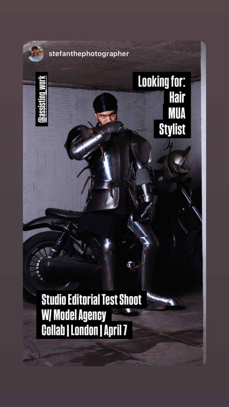 hairstylist and mua needed for a test shoot in east london. dm or email if available.