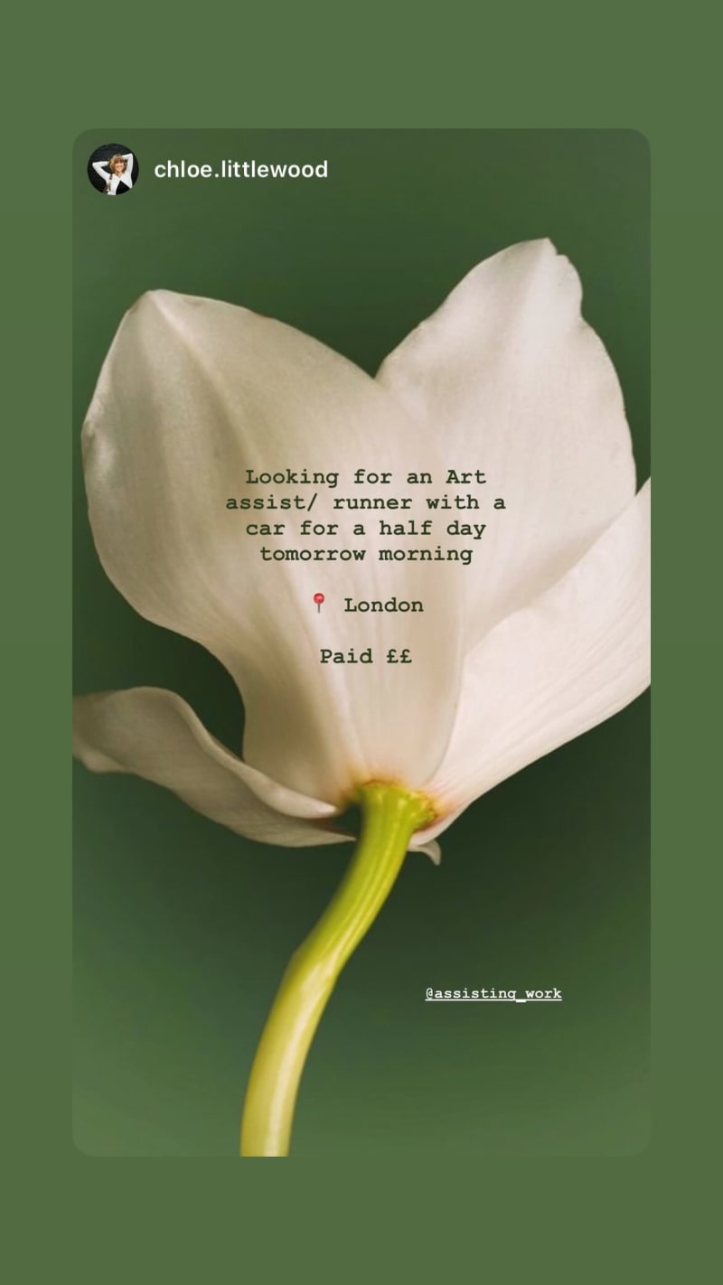 looking for an art assistant/runner with a car for a half day tomorrow morning. based in london and paid.