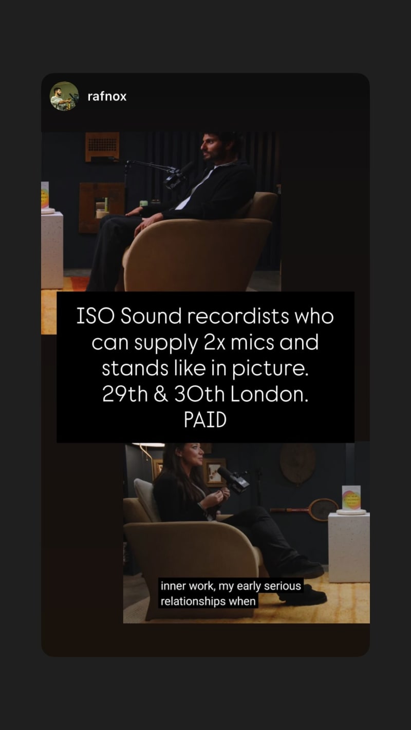 iso sound recordists who can supply 2x mics and stands like in the picture for a london shoot.