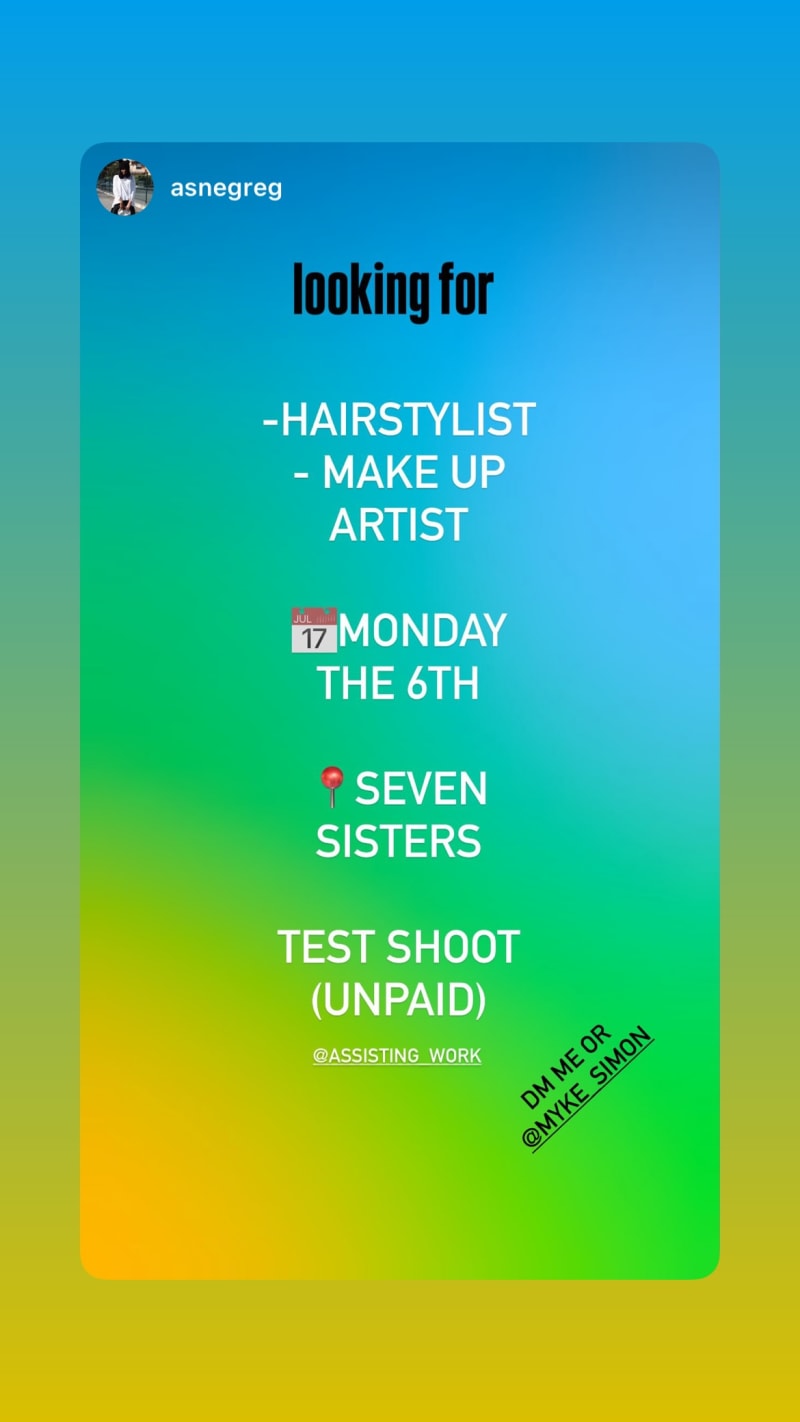 looking for a hairstylist and makeup artist for a test shoot in seven sisters. dm for details.