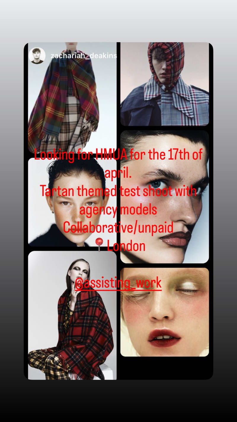 looking for an hmua for a tartan-themed test shoot with agency models in london. collaborative and unpaid.