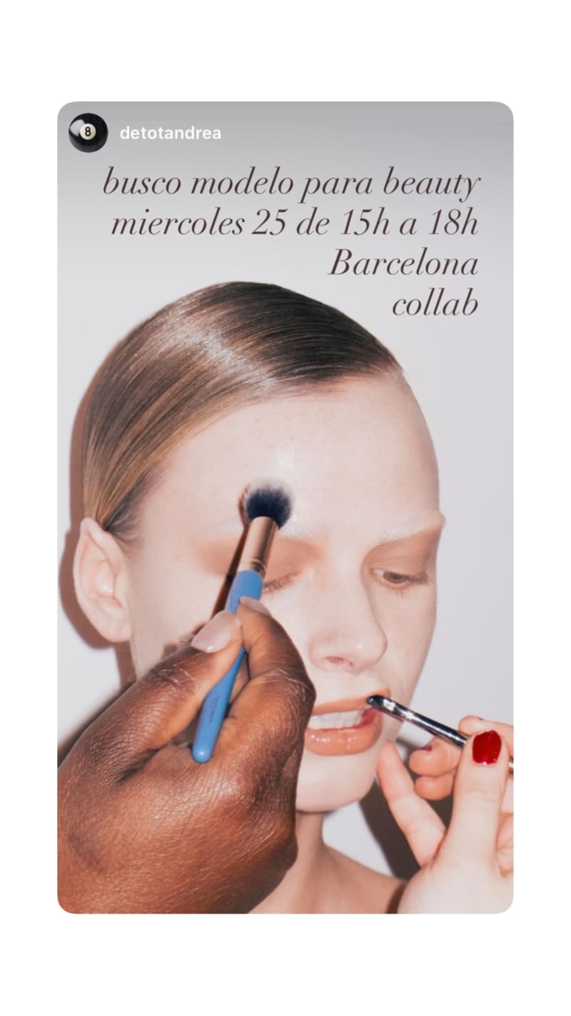 seeking a model for a beauty collab in barcelona from 15h to 18h on wednesday the 25th.