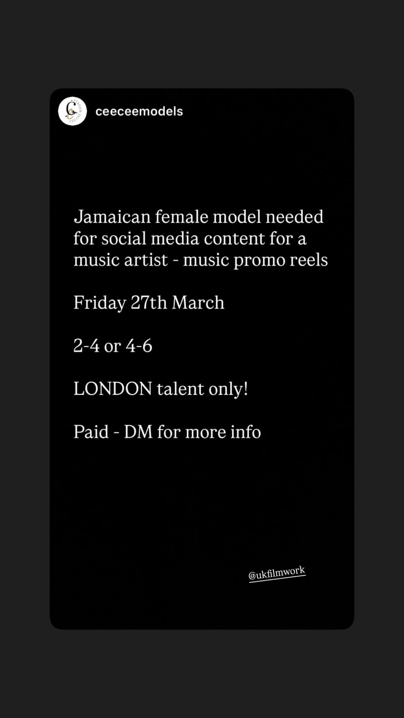 needed for social media content for a music artist, specifically music promo reels. london talent only.
