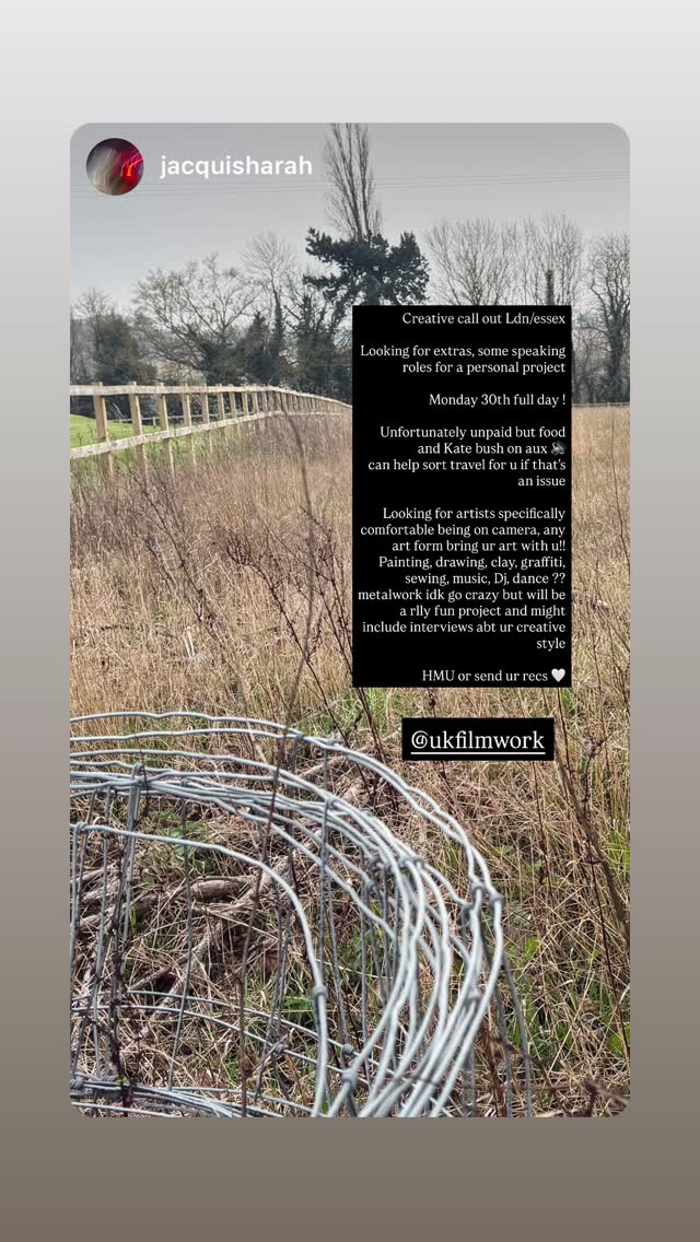 looking for artists comfortable being on camera for a personal project in london/essex. any art form is welcome, including painting, drawing, clay, graffiti, sewing, music, dj, dance, metalwork and more, and it may include interviews about your creative style.