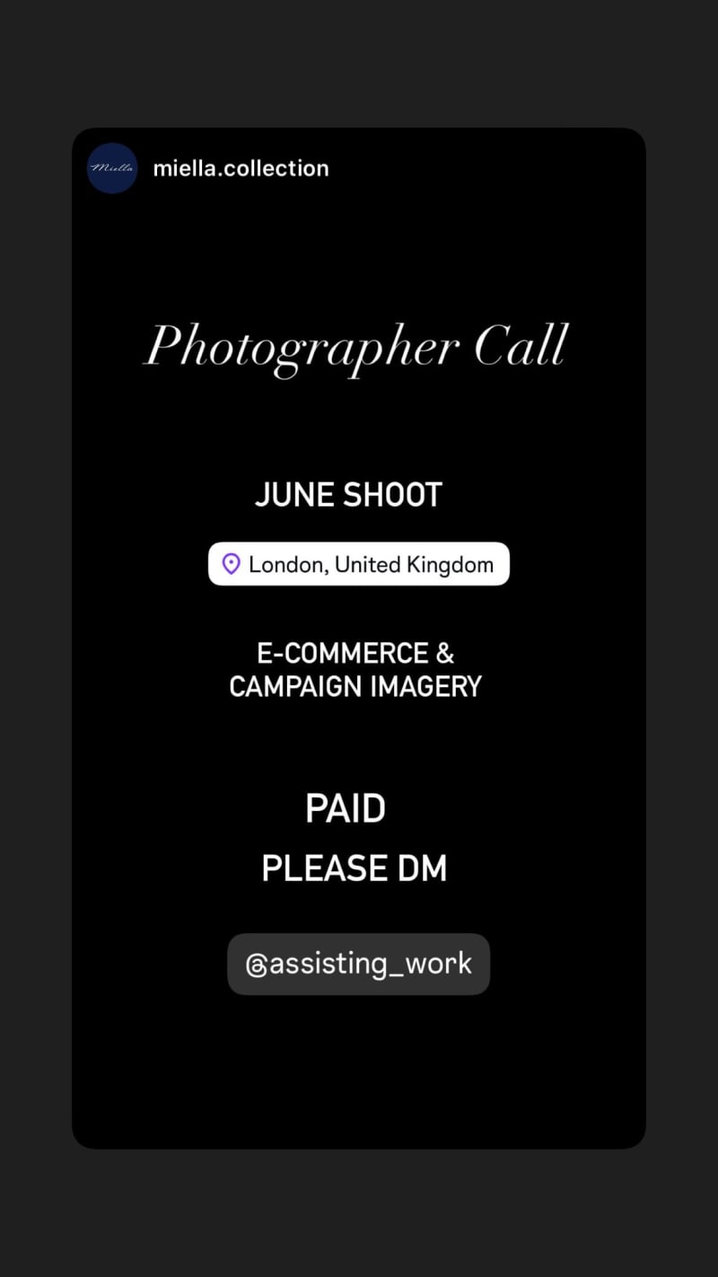 photographer needed for a june shoot creating e-commerce and campaign imagery. please dm to apply.