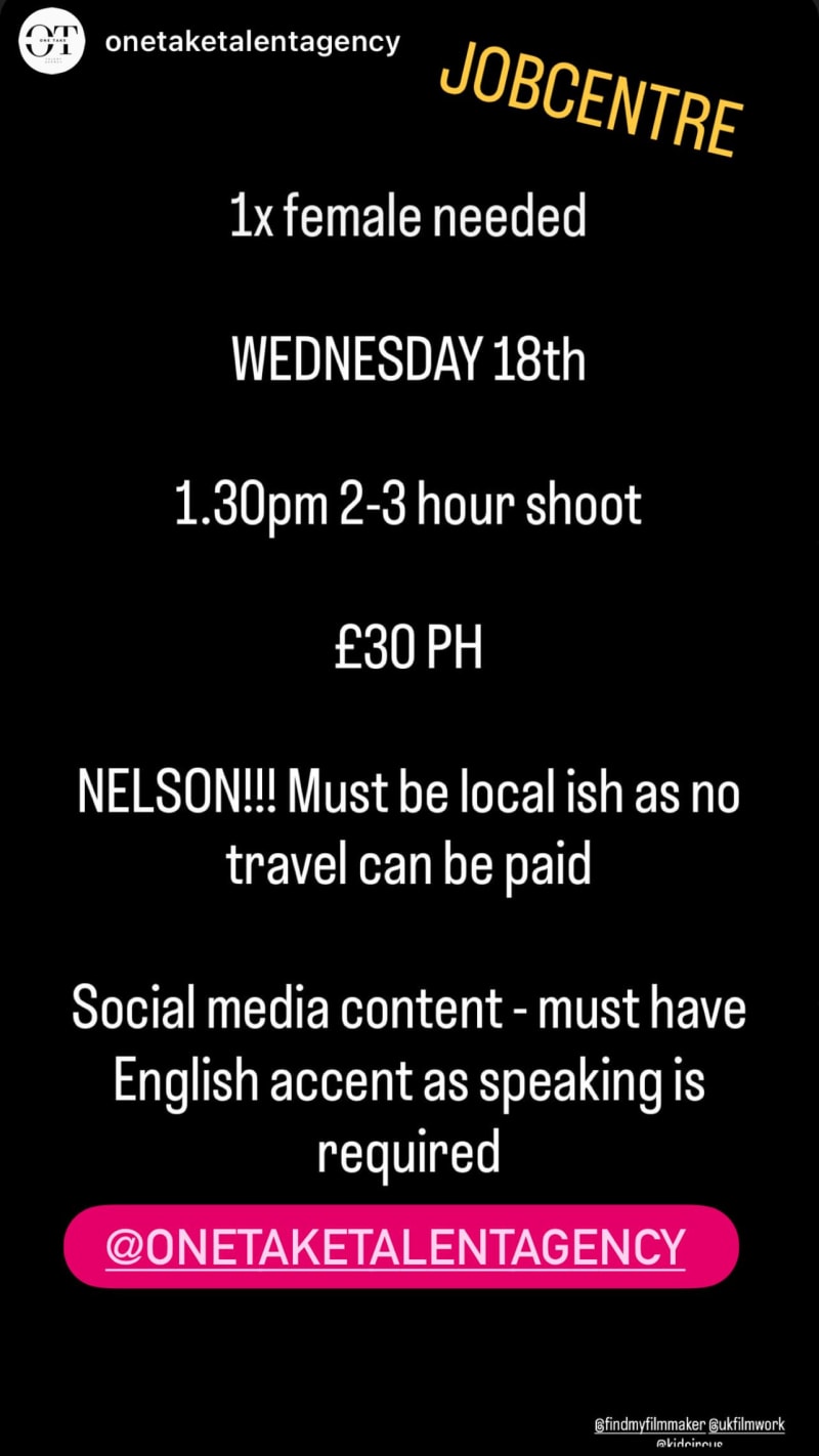 social media content shoot seeking 1 female talent. must have an english accent as speaking is required and be local to nelson as no travel can be paid.