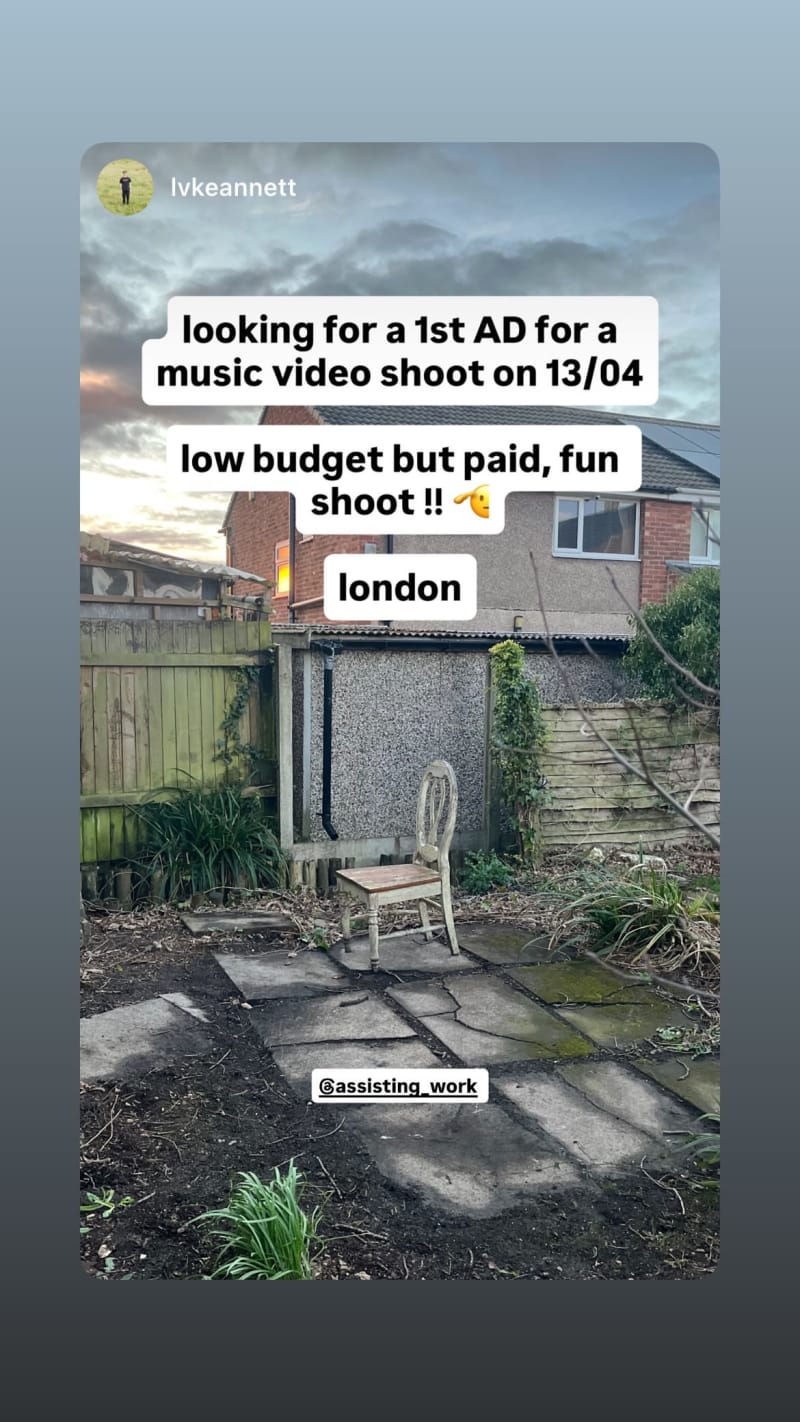 looking for a 1st ad for a music video shoot. low budget but paid, fun shoot.