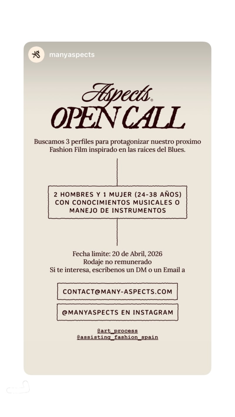 open call for 3 profiles to star in an upcoming fashion film inspired by the roots of blues. seeking 2 men and 1 woman aged 24–38 with musical knowledge or ability to play instruments.
