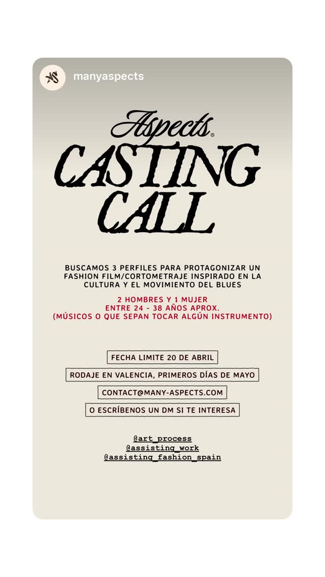 seeking 3 leads for a fashion film/short film inspired by blues culture and movement. applicants should be around 24-38 and be musicians or know how to play an instrument.