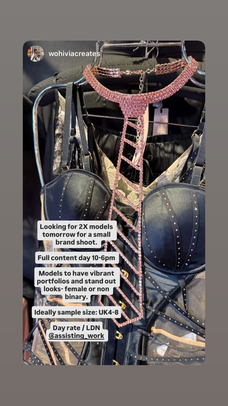 small brand shoot for a full content day, looking for models with vibrant portfolios and standout looks; female or non-binary, ideally sample size uk 4-8.