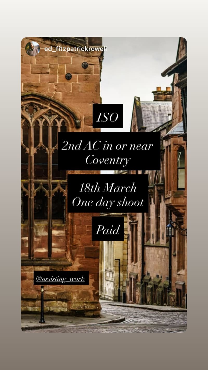 seeking a 2nd ac in or near coventry for a one day shoot.
