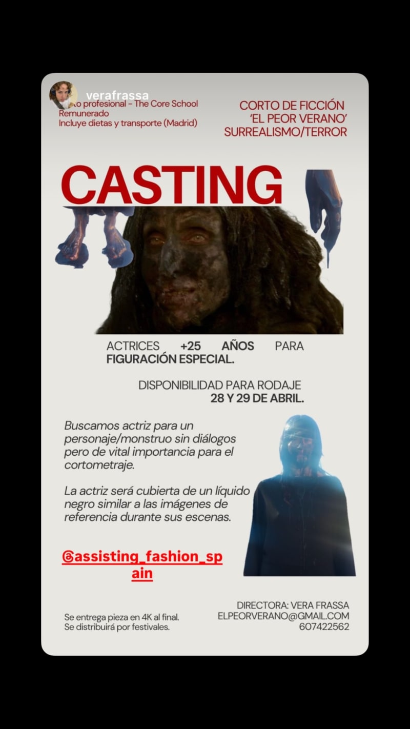 casting for an actress aged 25+ for a special background character/monster with no dialogue but key importance in a surrealist/horror fiction short. the actress will be covered in a black liquid similar to the reference images during her scenes.