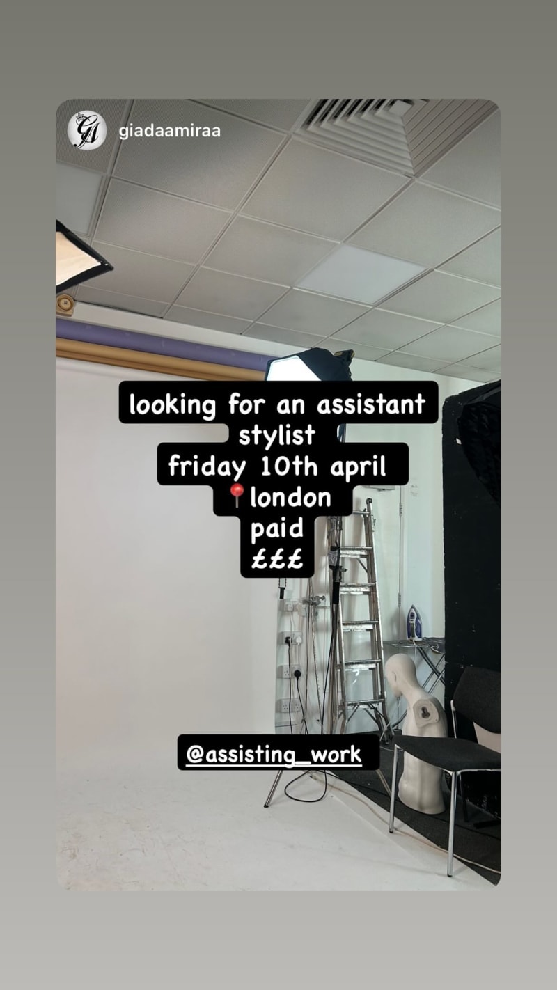 looking for an assistant stylist for a paid job in london on friday 10th april.