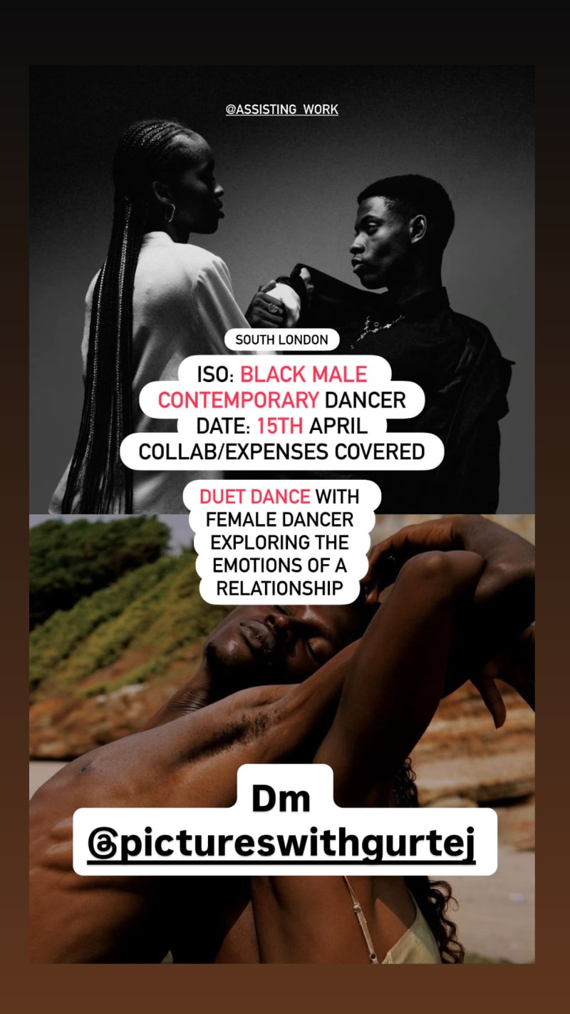 duet dance with a female dancer, exploring the emotions of a relationship. collab shoot with expenses covered.
