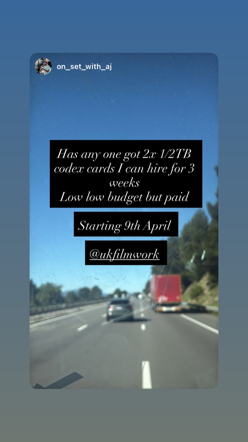 seeking 2x 1/2tb codex cards to hire for 3 weeks, starting 9th april. low low budget but paid.