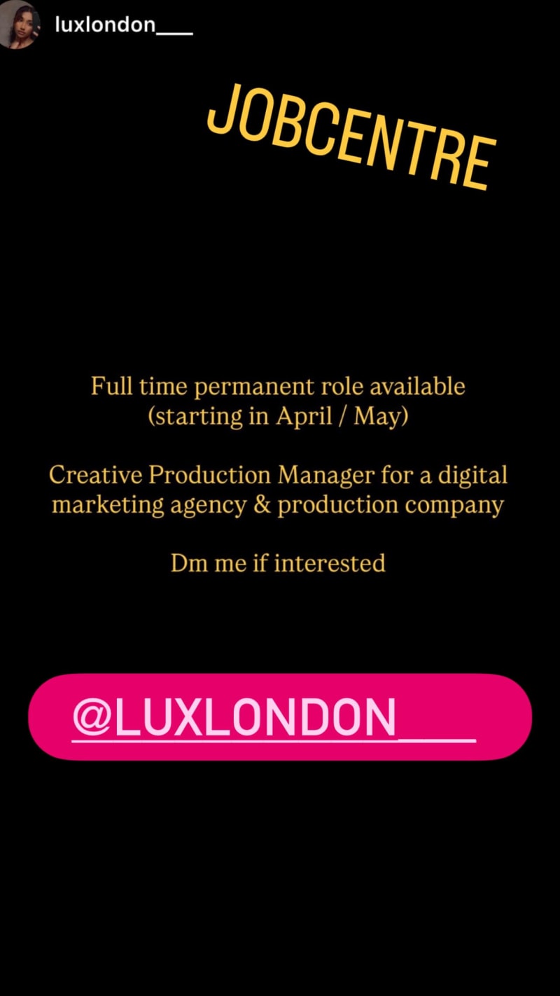 full time permanent creative production manager role for a digital marketing agency & production company, starting in april/may.