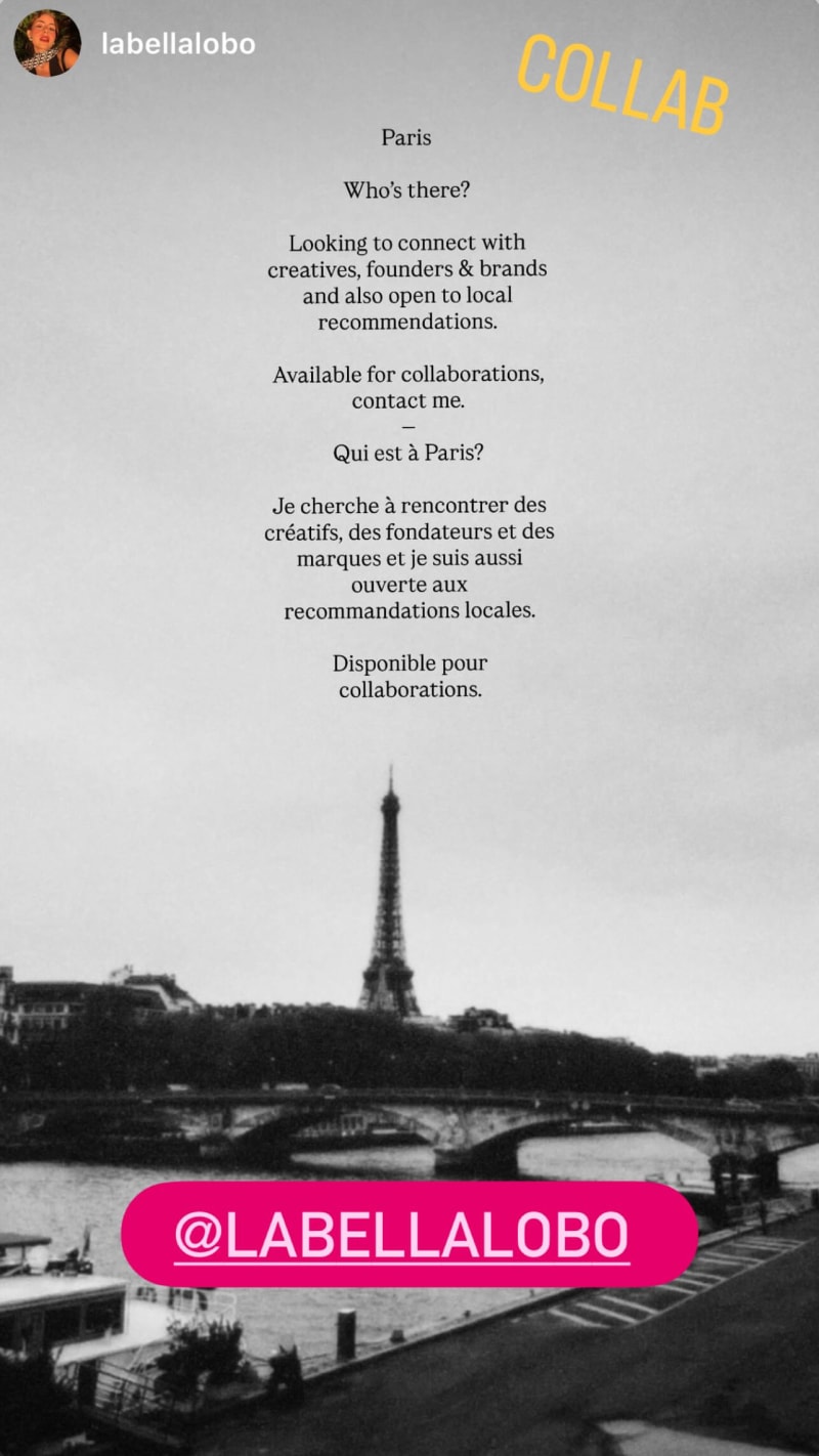 open to connect with creatives, founders and brands in paris and open to local recommendations. available for collaborations; contact me.