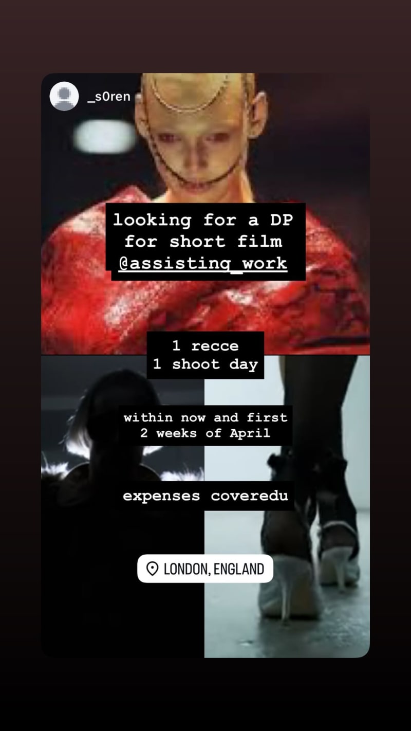 looking for a dp for a short film. 1 recce and 1 shoot day within the first 2 weeks of april.