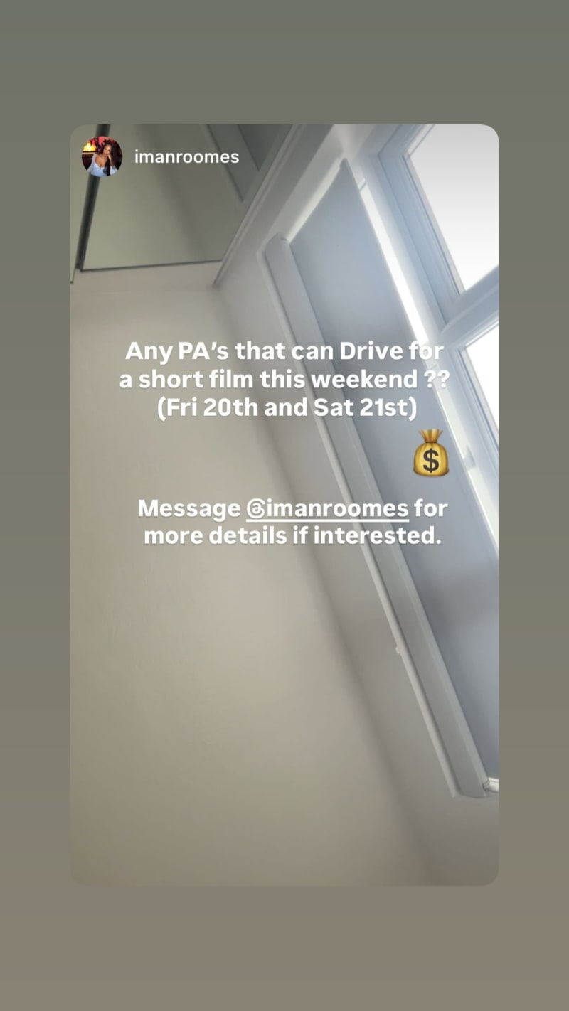 seeking a pa who can drive for a short film shoot this weekend. message for more details if interested.
