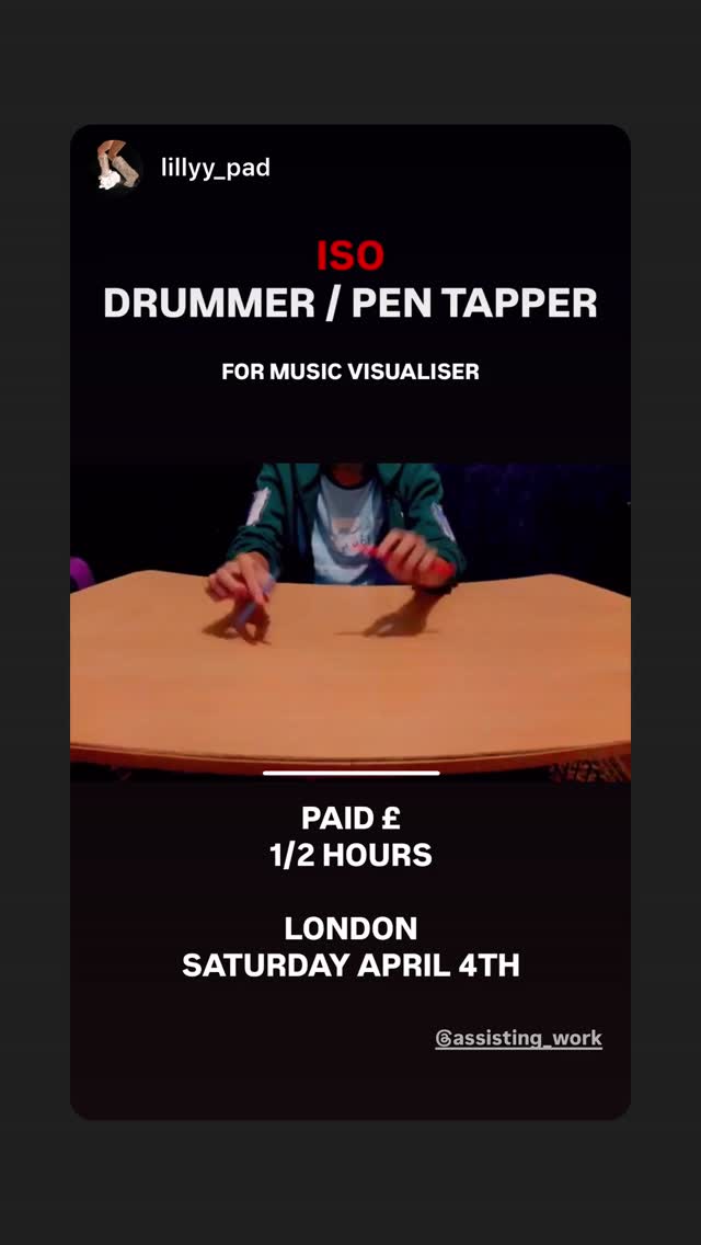 seeking a drummer or pen tapper for a music visualiser. paid role for a 1/2 hour session.