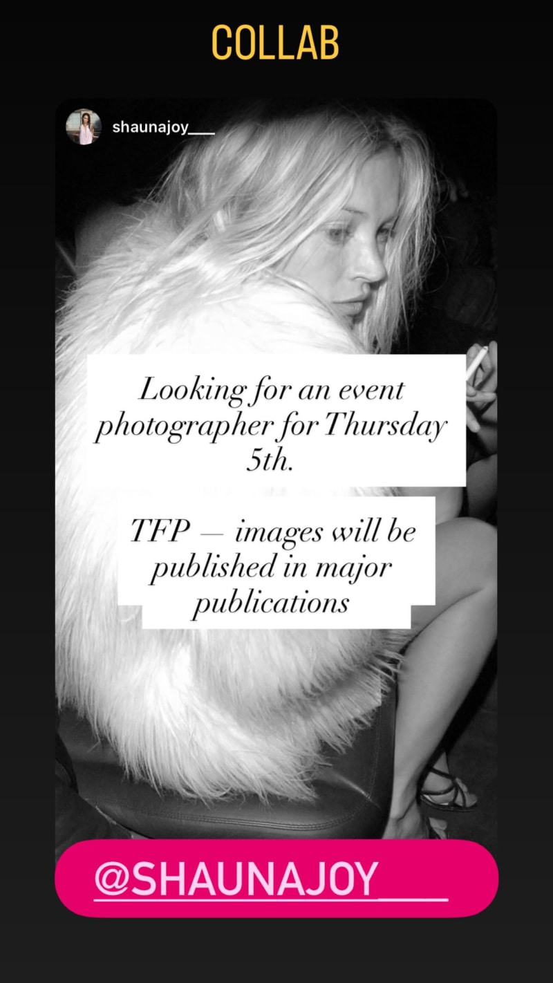 looking for an event photographer for thursday 5th; tfp, images will be published in major publications.