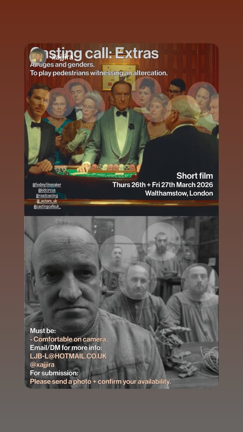 seeking extras of all ages and genders for a short film, to play pedestrians witnessing an altercation. applicants must be comfortable on camera and send a photo with availability.