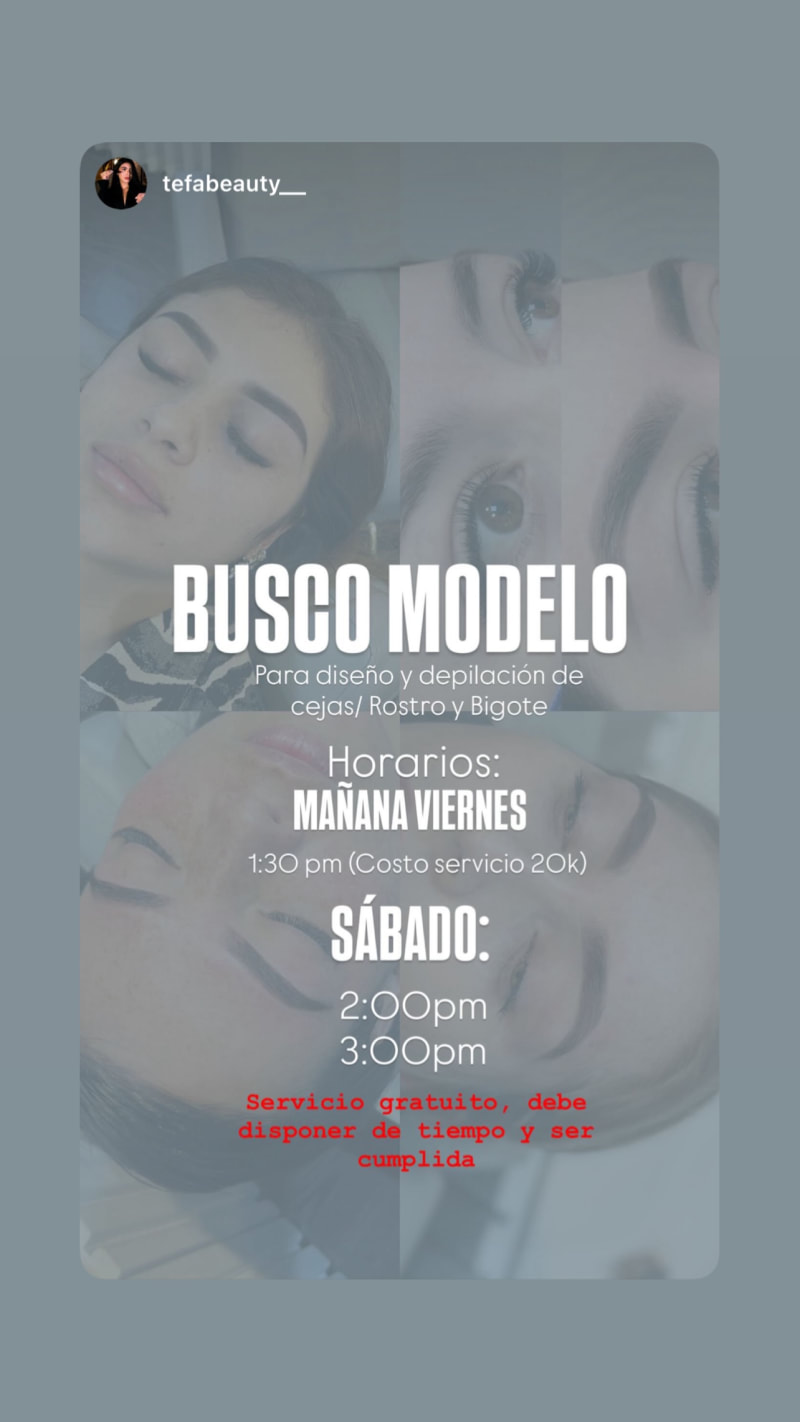 seeking a model for eyebrow design and depilation, including brows, face and moustache. free service and must be available and reliable.