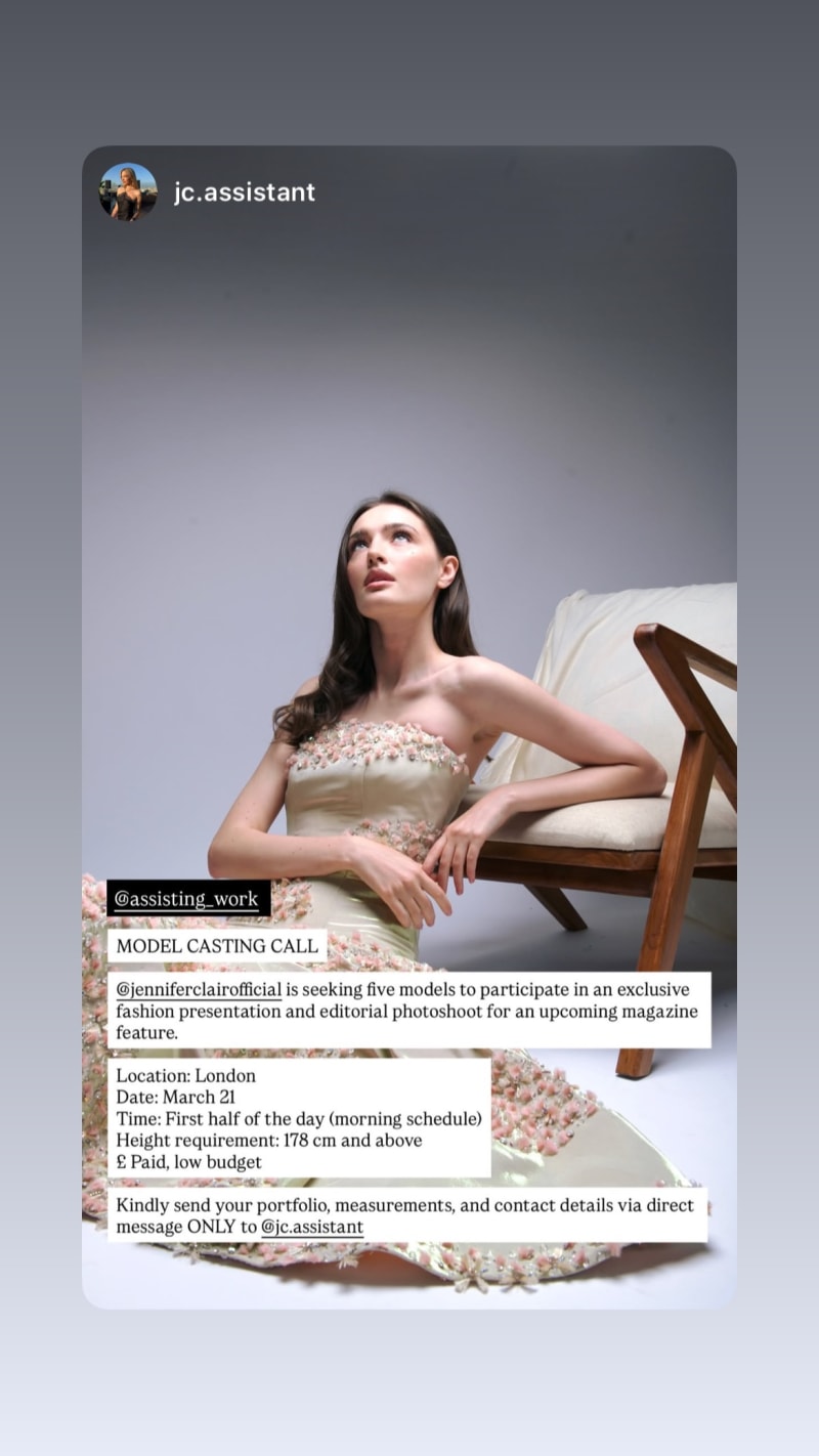 participate in an exclusive fashion presentation and editorial photoshoot for an upcoming magazine feature; height 178 cm+. morning schedule; send portfolio and measurements by dm.