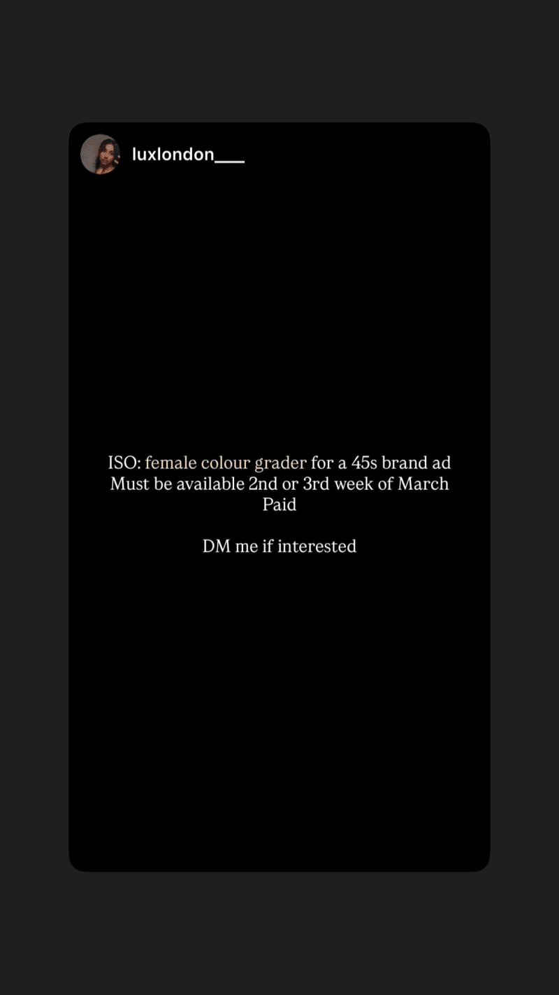 grading a 45s brand ad; must be available the 2nd or 3rd week of march. dm to apply.
