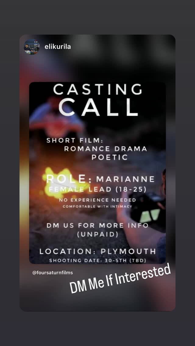 casting for the role of marianne in a short film romance drama poetic. no experience needed and must be comfortable with intimacy.