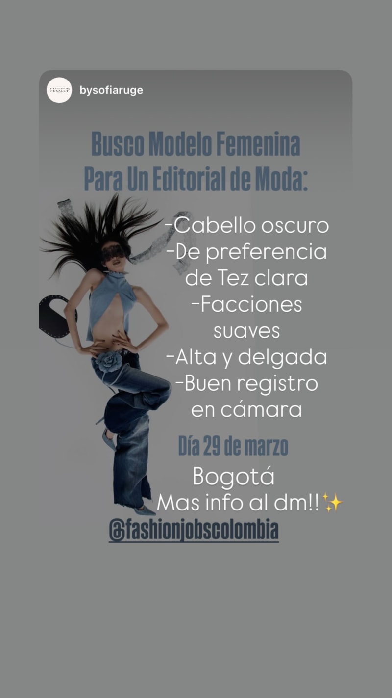 seeking a female model for a fashion editorial with dark hair, preferably fair skin, soft features, tall and slim, with good presence on camera.