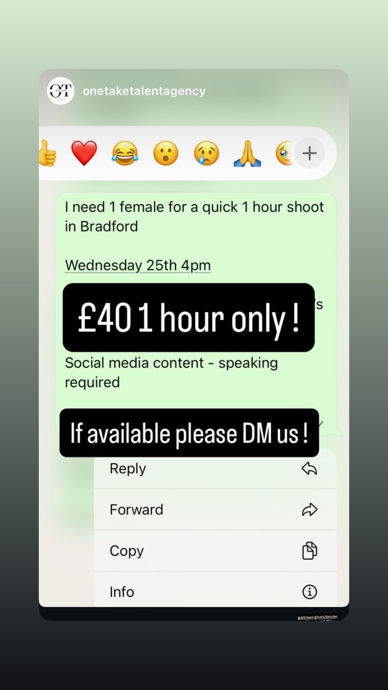 1 female needed for a quick 1-hour social media content shoot with speaking required in bradford.