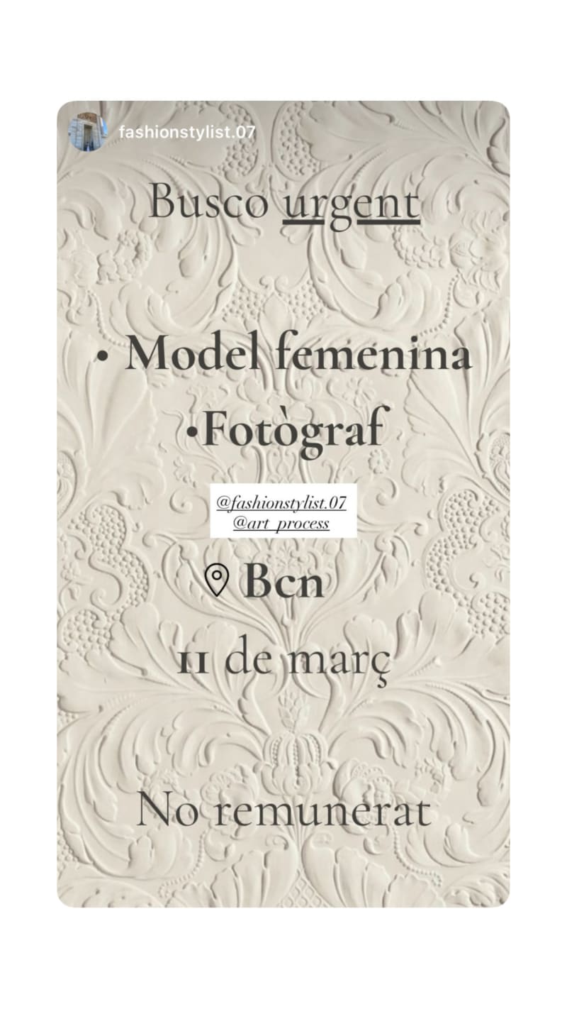 urgent call for a female model and a photographer in barcelona on 11 march. no remuneration.