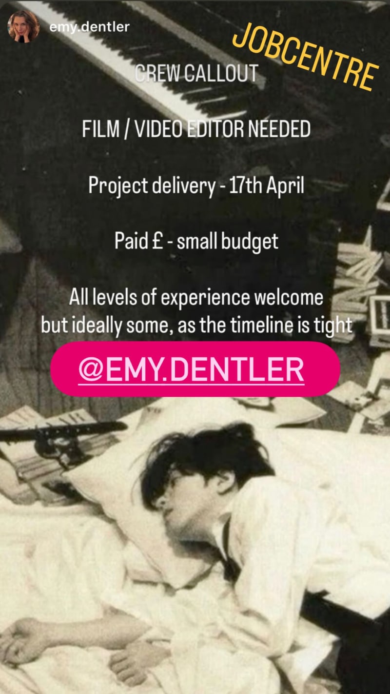 film/video editor needed for a project with delivery by 17th april. all levels of experience welcome, ideally with some experience as the timeline is tight.