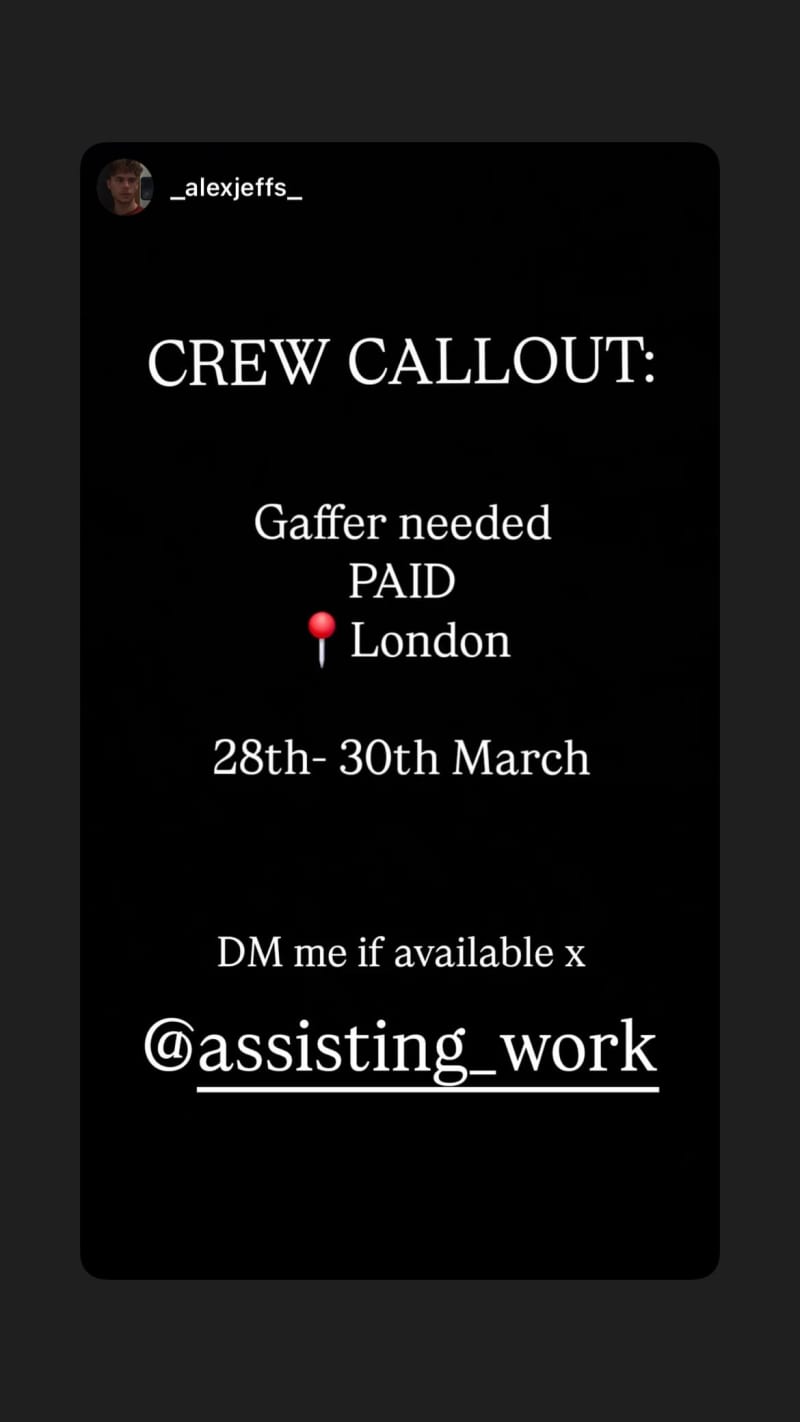 gaffer needed for a paid shoot in london. dm if available.