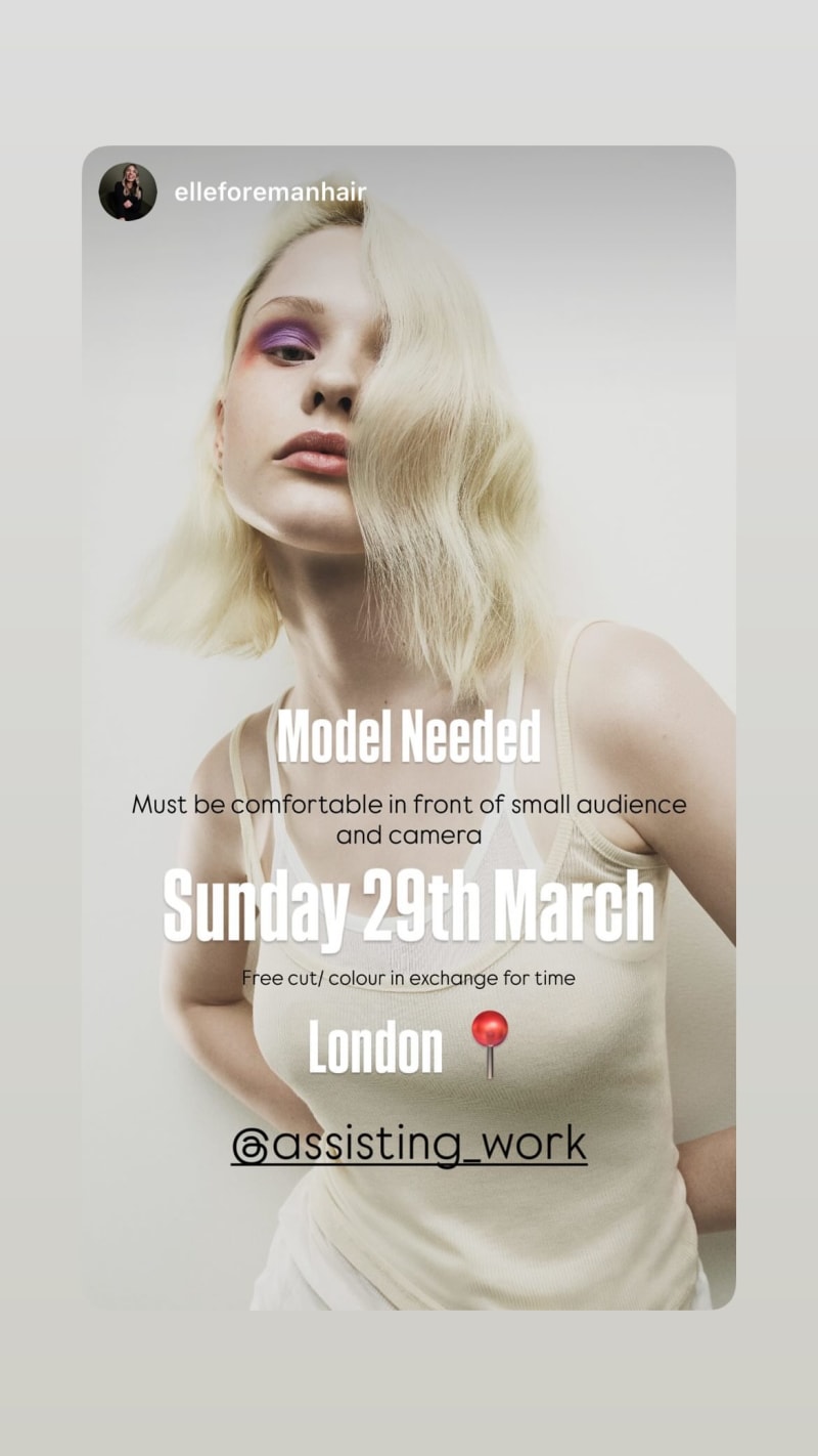 model needed for a hair session, must be comfortable in front of a small audience and camera. free cut and colour in exchange for time.