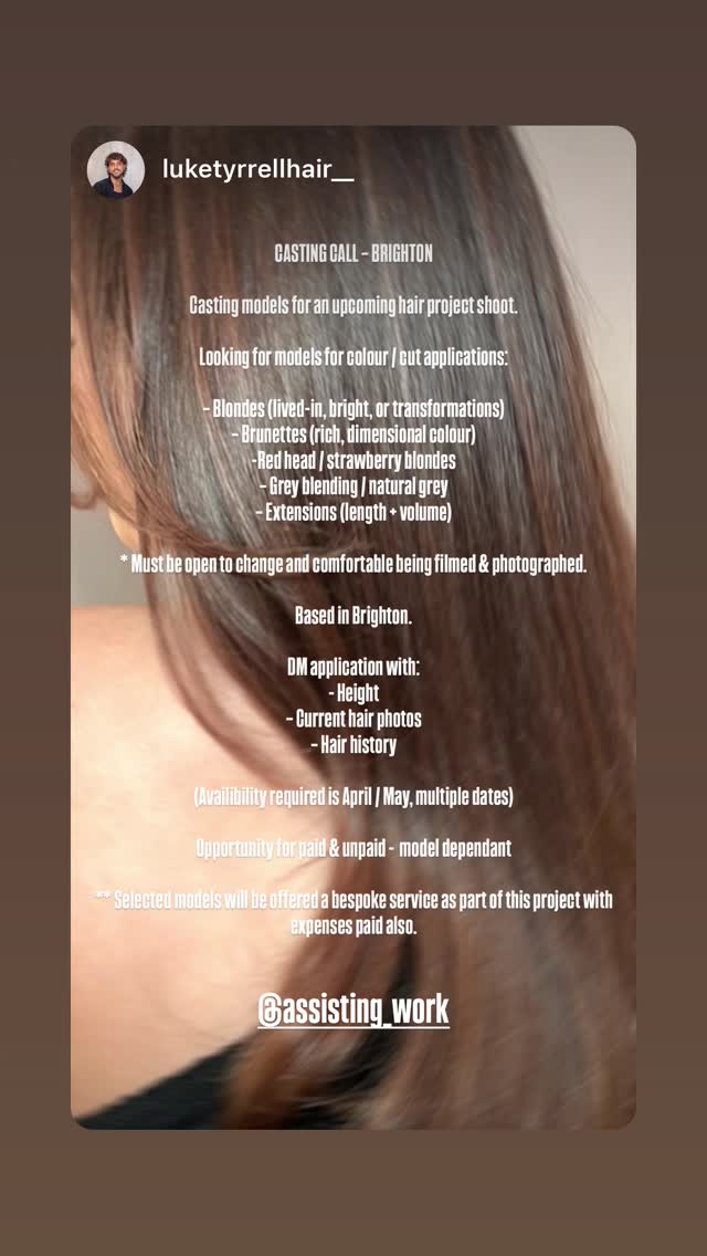 casting models for an upcoming hair project shoot for colour, cut or extensions applications. must be open to change and comfortable being filmed and photographed.