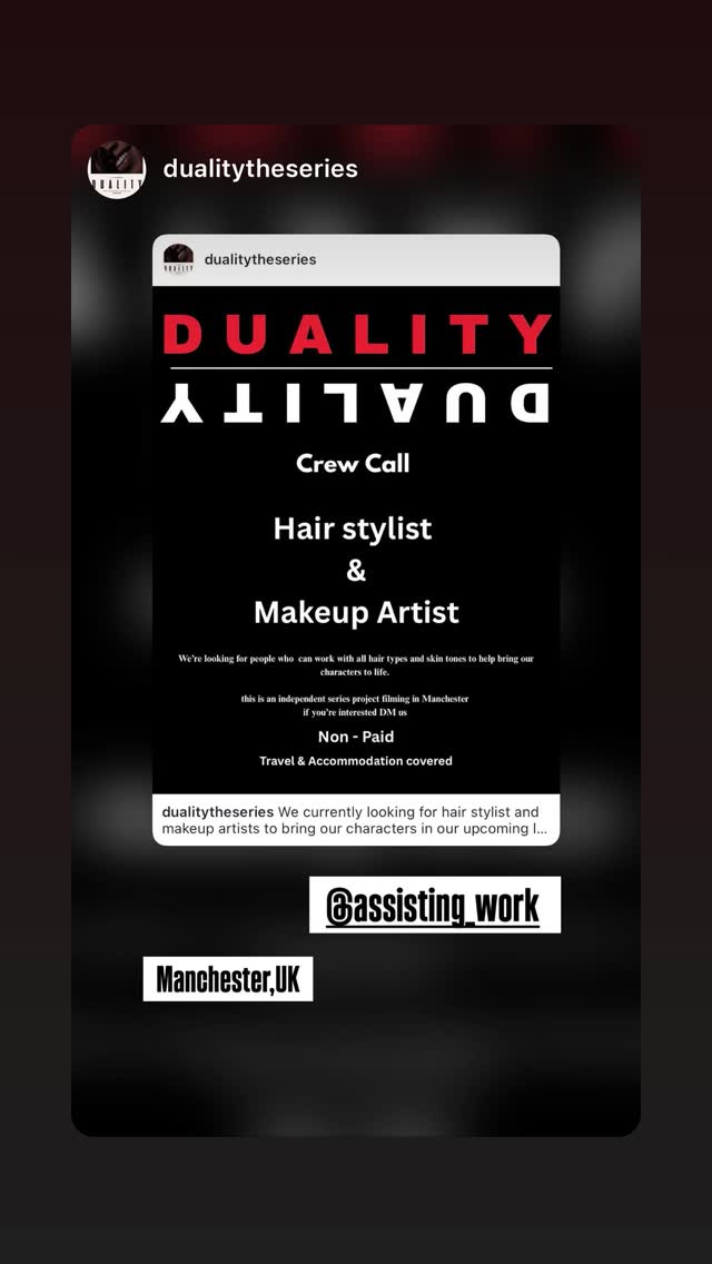 crew call for a hair stylist and makeup artist for an independent series project. looking for people who can work with all hair types and skin tones to bring the characters to life.