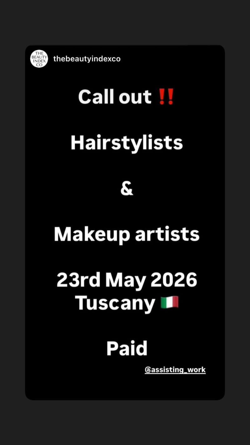 call out for hairstylists and makeup artists for a paid opportunity in tuscany on 23/05/26.