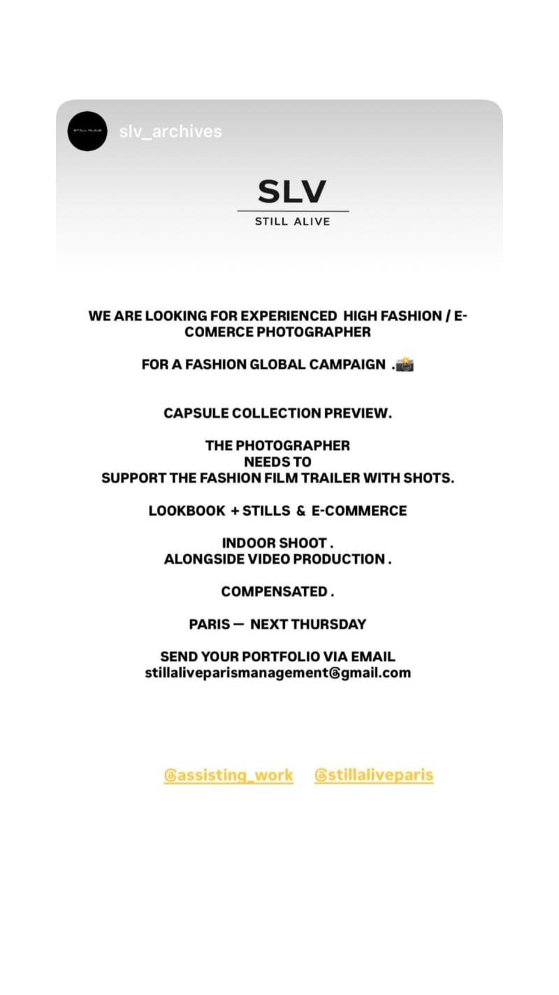 experienced photographer needed for a global fashion campaign capsule collection preview, shooting lookbook, stills and e-commerce. indoor shoot alongside video production, supporting the fashion film trailer with shots.