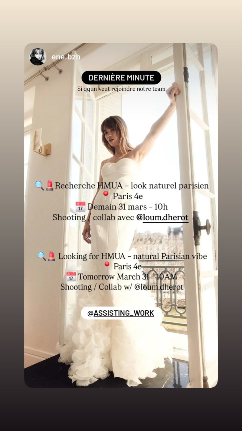 looking for an hmua for a shooting collab with a natural parisian vibe in paris 4e.