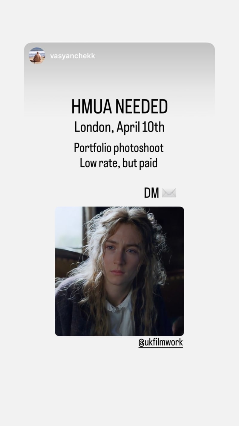 hmua needed for a portfolio photoshoot in london. low rate, but paid.