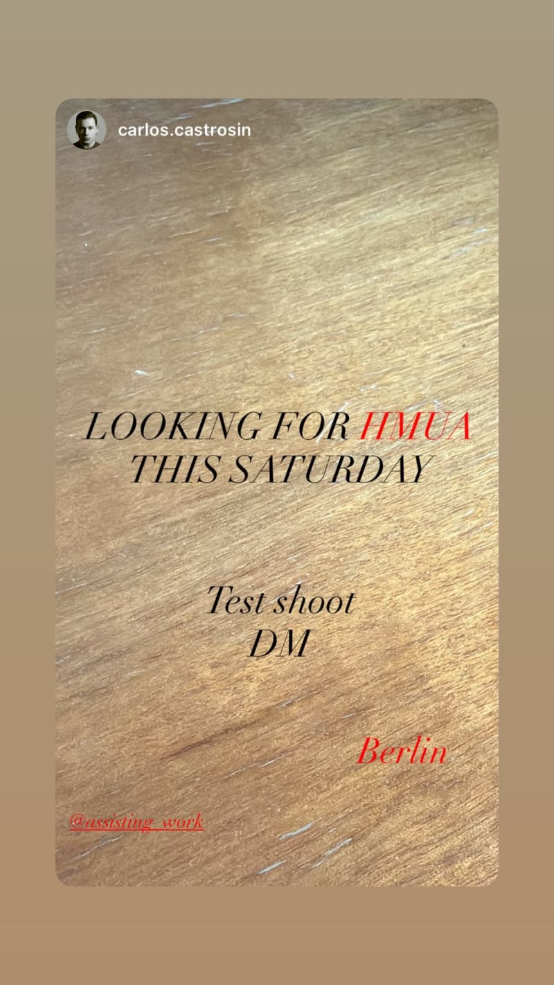 looking for an hmua for a test shoot this saturday. dm to apply.