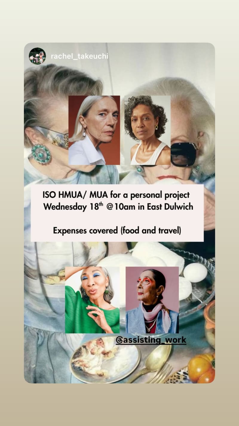 hmua / mua needed for a personal project in east dulwich on wednesday 18th at 10am. food and travel expenses covered.