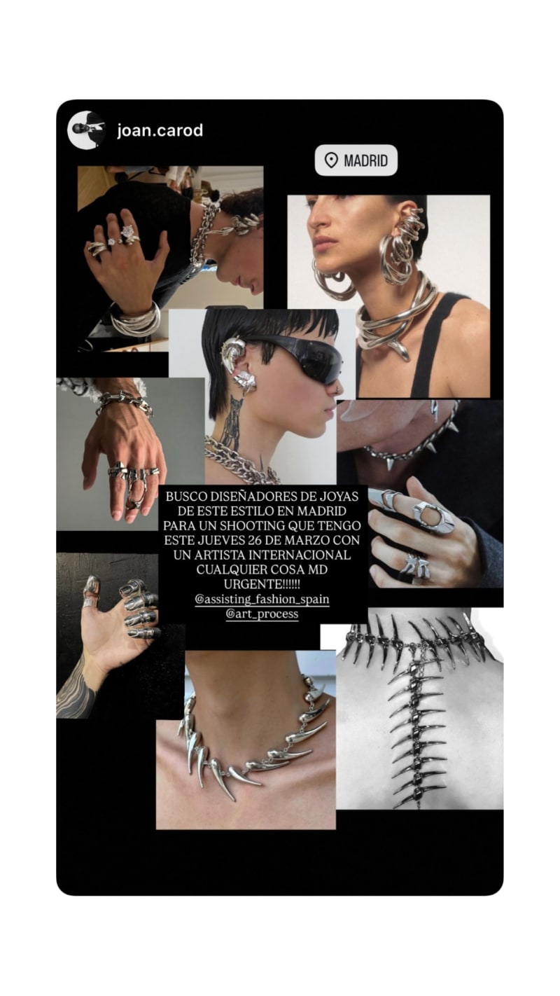 looking for jewelry designers in madrid with this kind of style for a shoot with an international artist. urgent request for thursday 26 march.