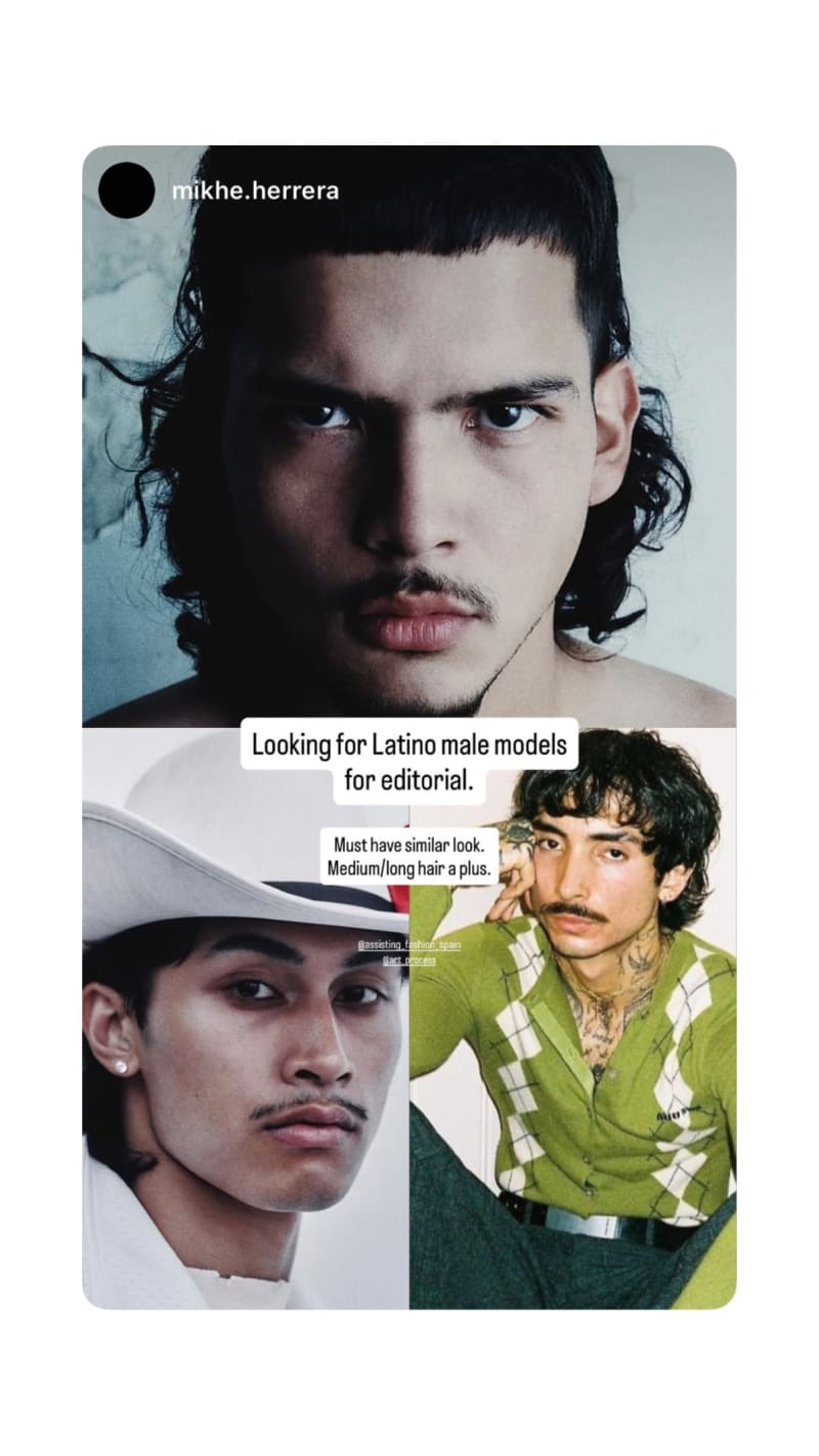 looking for latino male models for an editorial. must have a similar look; medium/long hair is a plus.